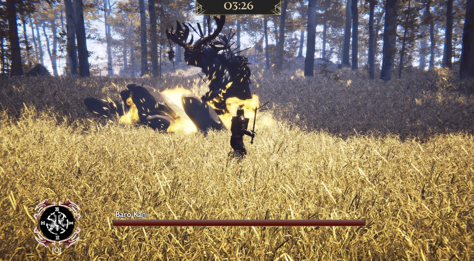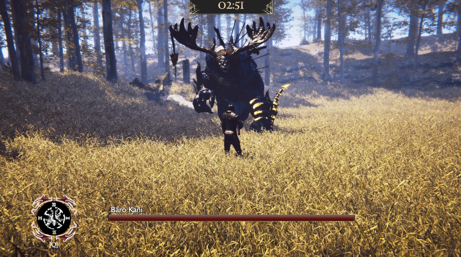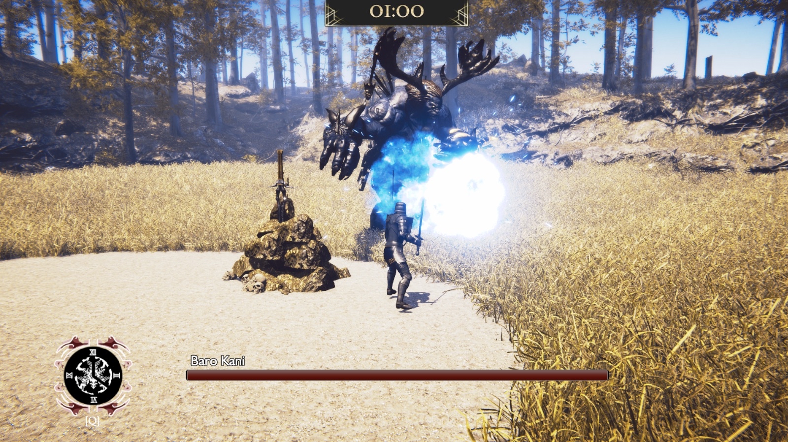 You are a knight tasked with defeating an infamous Forest Monster called Baro Kani. Deep in the forest you found a weirdly open area, expecting an encounter, which happened. Use your time stopping ability to dodge and prepare for your next attack. Be careful though, because time is your life, and what you do may increase or decrease your very own lifespan.